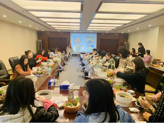 3月8日上午,36名女職工齊聚916會(huì)議室。工會(huì)副主席陳衛(wèi)東同志首先致辭,給全體女職工送上親切的慰問(wèn)和祝福。接下來(lái),開(kāi)展了多肉植物知識(shí)科普、有獎(jiǎng)?chuàng)尨鸷团杈爸谱骰顒?dòng)。活動(dòng)中,女同胞們互相交流互動(dòng),一步一步創(chuàng)作自己的盆景作品。